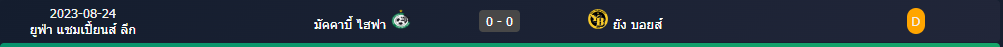 สถิติพบกัน 1 หลังสุดของ : ยัง บอยส์ -vs- มัคคาบี้ ไฮฟา