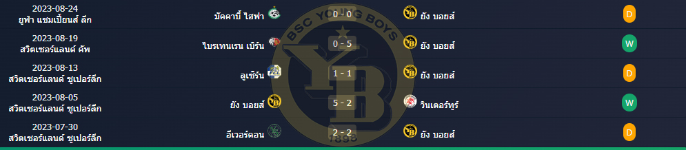 สถิติ 5 นัดหลังสุดของ : ยัง บอยส์