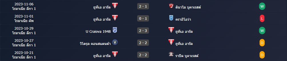 สถิติ 5 นัดหลังสุดของ : ยูทีเอ อาราด