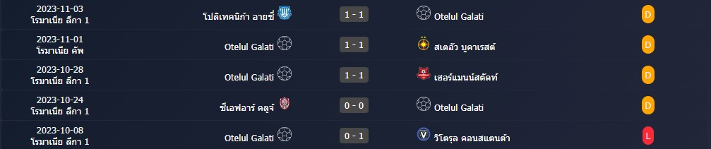 สถิติ 5 นัดหลังสุดของ : โอเตลุล