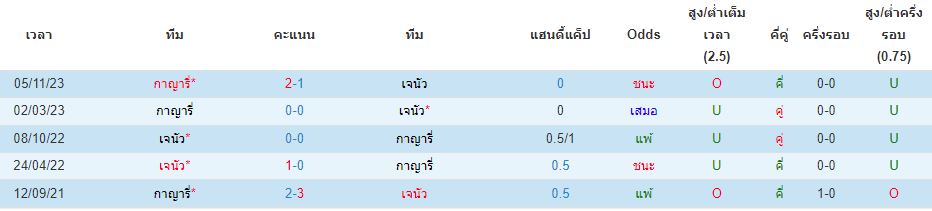 สถิติพบกัน 5 นัดหลังสุดของ : เจนัว -vs- กาญารี่