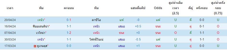 สถิติ 5 นัดหลังสุดของ : เจนัว