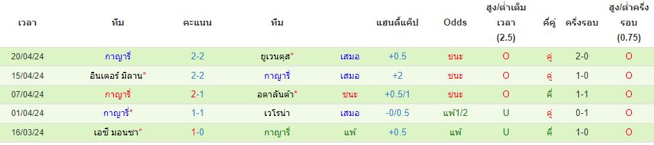 สถิติ 5 นัดหลังสุดของ : กาญารี่