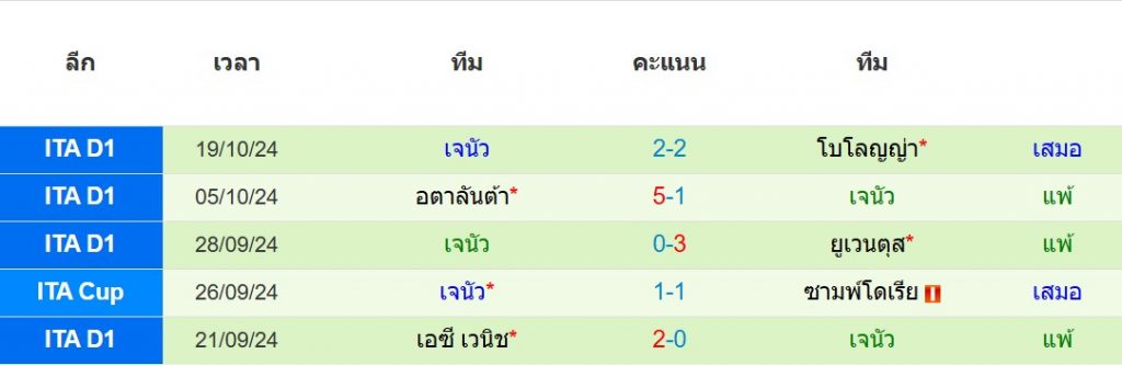 สถิติ 5 นัดหลังสุดของ : เจนัว