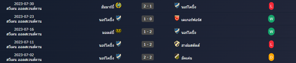 สถิติ 5 นัดหลังสุดของ : นอร์โคปิ้ง