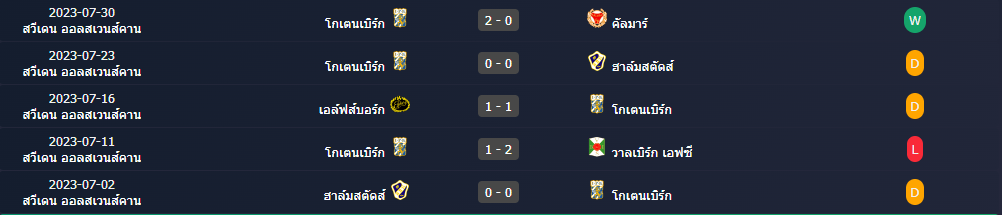 สถิติ 5 นัดหลังสุดของ : โกเตนเบิร์ก