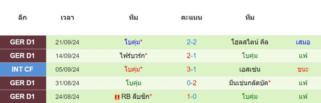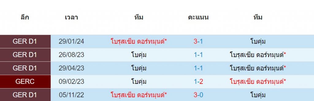 สถิติ 5 นัดหลังสุดของ : โบรุสเซีย ดอร์ทมุนด์ -vs- โบคุ่ม