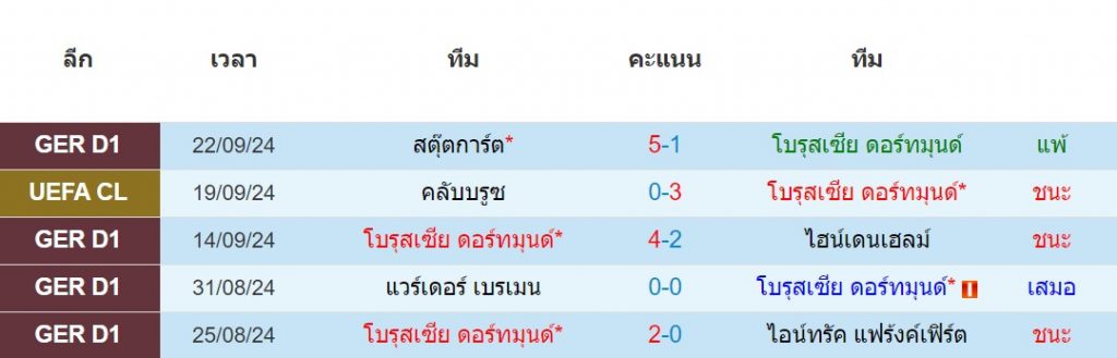 สถิติ 5 นัดหลังสุดของ : โบรุสเซีย ดอร์ทมุนด์