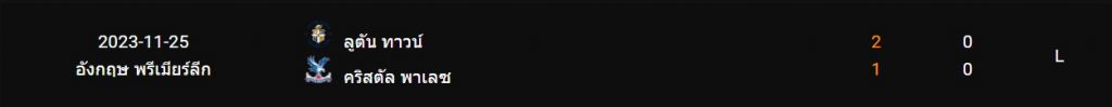 สถิติพบกัน 2 นัดหลังสุดของ : คริสตัล พาเลซ -vs- ลูตัน ทาวน์