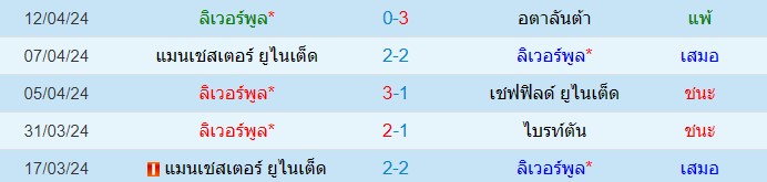 สถิติ 5 นัดหลังสุดของ : ลิเวอร์พูล