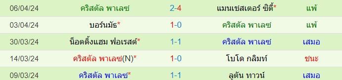 สถิติ 5 นัดหลังสุดของ : คริสตัล พาเลซ