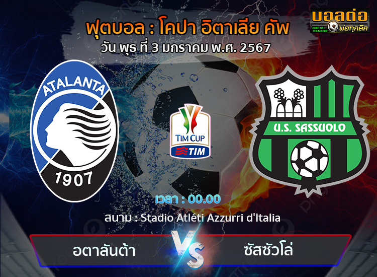 วิเคราะห์บอล ฟุตบอล โคปา อิตาเลีย คัพ : อตาลันต้า -vs- ซัสซัวโล่ (03/01/67)