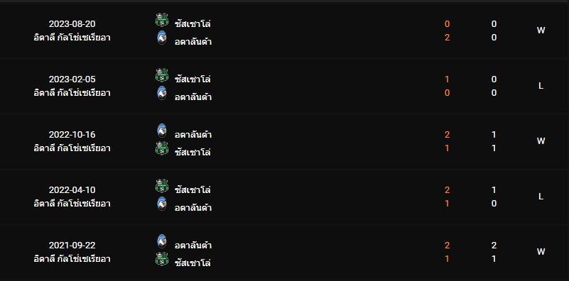 สถิติพบกัน 5 นัดหลังสุดของ : อตาลันต้า -vs- ซัสซัวโล่