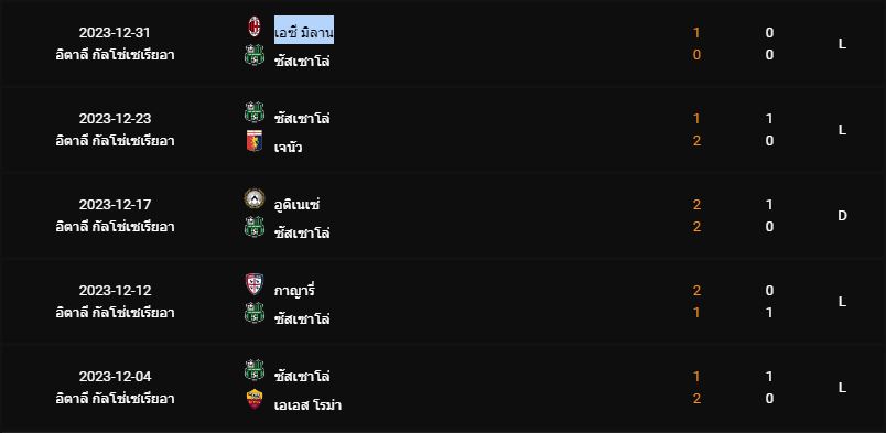 สถิติ 5 นัดหลังสุดของ : ซัสซัวโล่