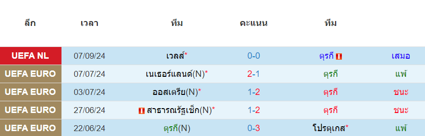 สถิติ 5 นัดหลังสุดของ : ตุรกี