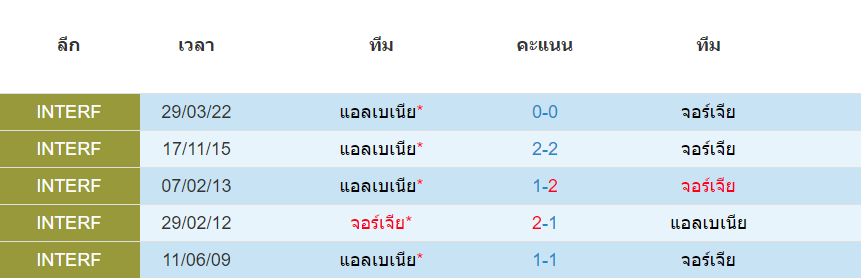 สถิติ 2 นัดหลังสุดของ : แอลเบเนีย -vs- จอร์เจีย