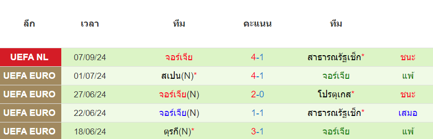 สถิติ 5 นัดหลังสุดของ : จอร์เจีย