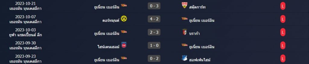 สถิติ 5 นัดหลังสุดของ : ยูนิโอน เบอร์ลิน