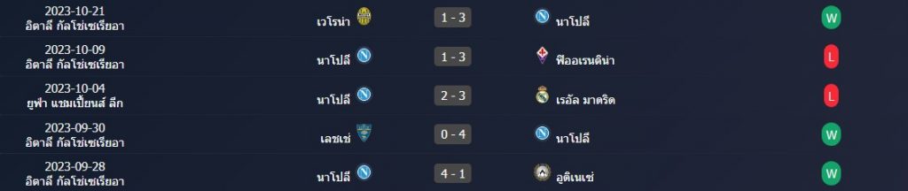 สถิติ 5 นัดหลังสุดของ : นาโปลี