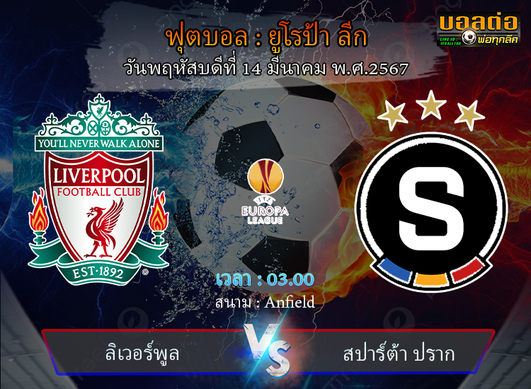 วิเคราะห์บอล ยูโรป้า ลีก : ลิเวอร์พูล -vs- สปาร์ต้า ปราก (13/03/67)