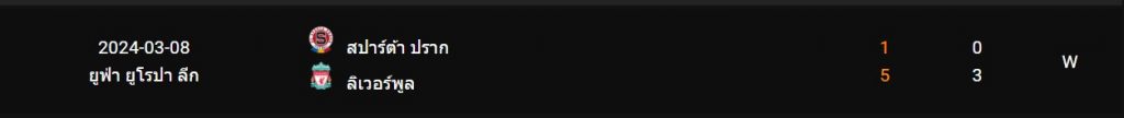 สถิติพบกัน 5 นัดหลังสุดของ : ลิเวอร์พูล -vs- สปาร์ต้า ปราก