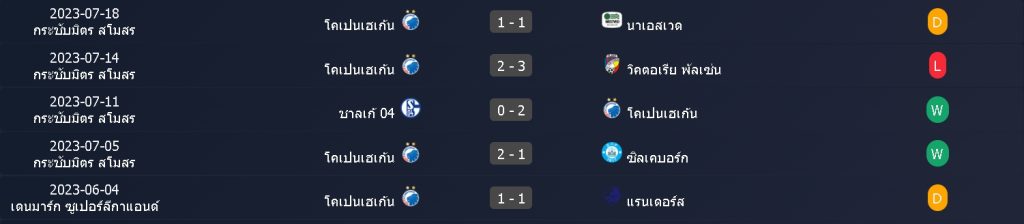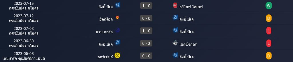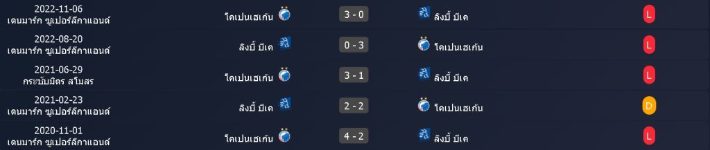สถิติพบกัน 5 นัดหลังสุดของ : ลิงบี้ -vs- โคเปนเฮเก้น