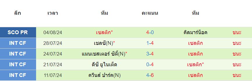สถิติ 5 นัดหลังสุดของ : เซลติก