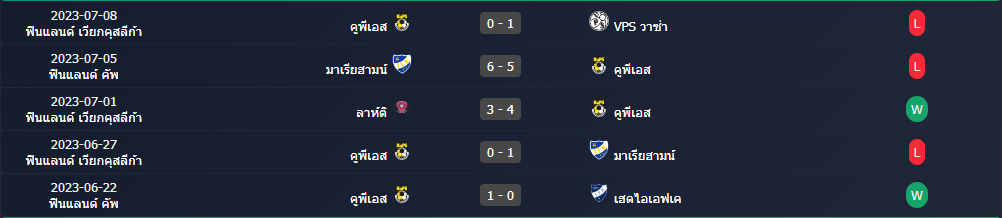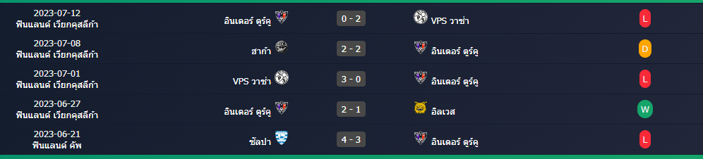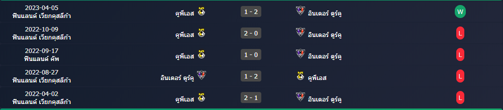 สถิติพบกัน 5 นัดหลังสุดของ : อินเตอร์ ตูร์คู -vs- คูพีเอส