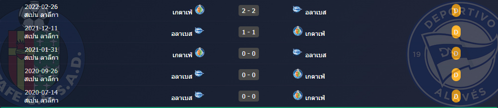 สถิติพบกันหลัง 5 สุดของ : เกตาเฟ่ -vs- อลาเบส