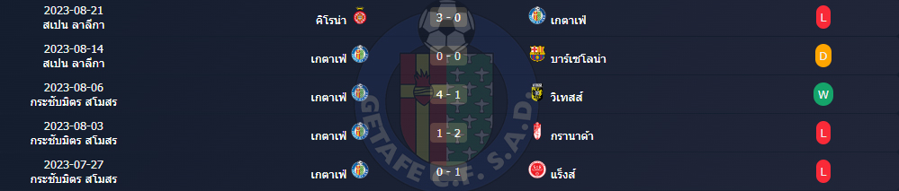 สถิติ 5 นัดหลังสุดของ : เกตาเฟ่