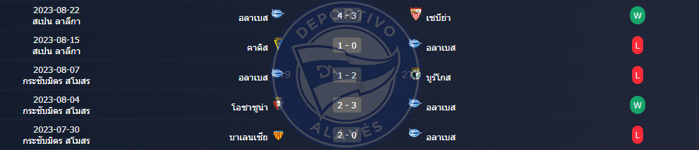 สถิติ 5 นัดหลังสุดของ : อลาเบส
