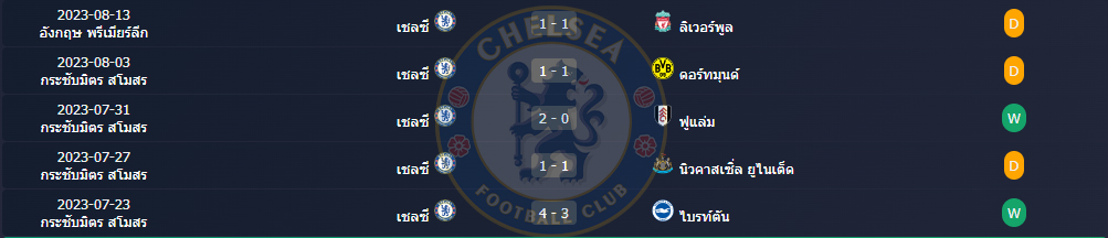 สถิติ 5 นัดหลังสุดของ : เชลซี