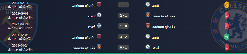 สถิติพบกันหลัง 5 สุดของ : เวสต์แฮม ยูไนเต็ด -vs- เชลซี