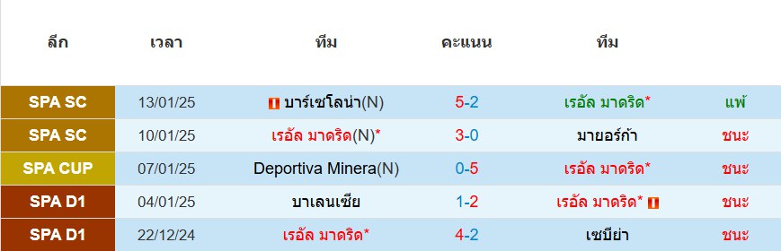 สถิติ 5 นัดหลังสุดของ : เรอัล มาดริด