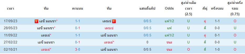 สถิติพบกัน 5 นัดหลังสุดของ : เลชเช่ -vs- มอนซ่า