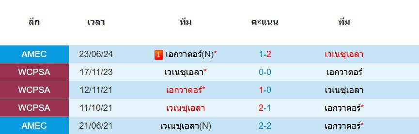 สถิติ 5 นัดหลังสุดของ : เอกวาดอร์ -vs- เวเนซูเอล่า