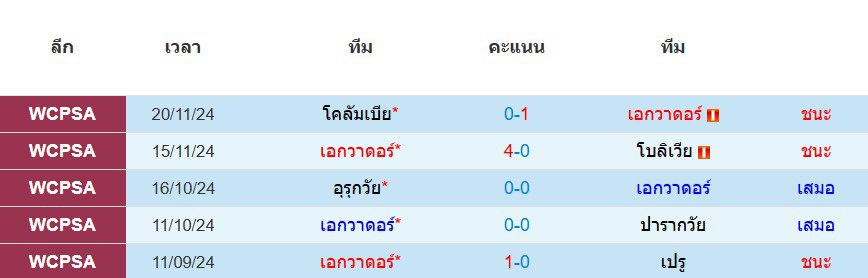 สถิติ 5 นัดหลังสุดของ : เอกวาดอร์