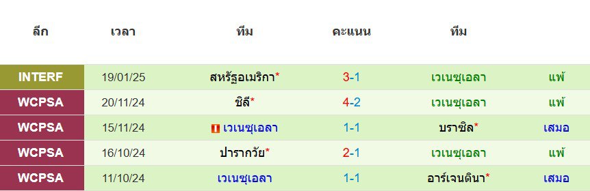 สถิติ 5 นัดหลังสุดของ : เวเนซูเอล่า