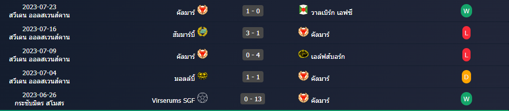 สถิติ 5 นัดหลังสุดของ : คัลมาร์