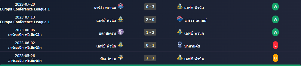 สถิติ 5 นัดหลังสุดของ : พิวนิค