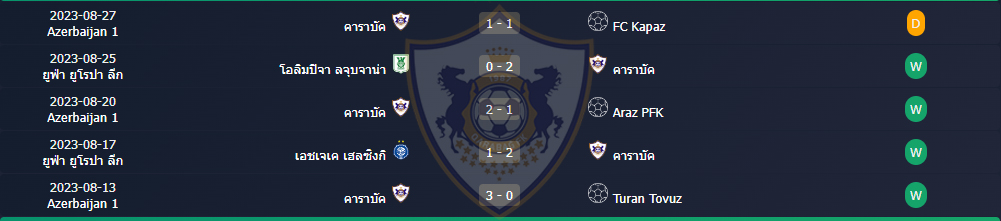 สถิติ 5 นัดหลังสุดของ : คาราบัก
