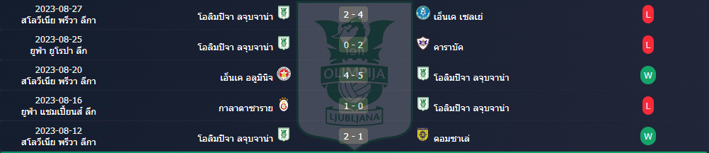 สถิติ 5 นัดหลังสุดของ : โอลิมปิย่า