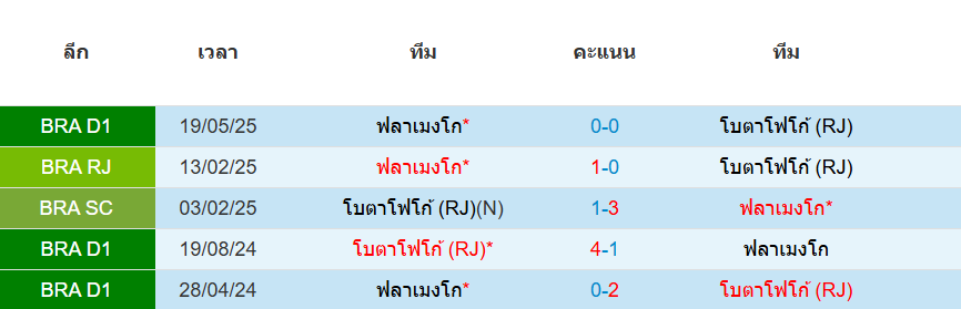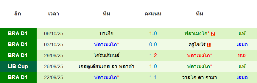 สถิติ 5 นัดหลังสุดของ : ฟลาเมงโก้