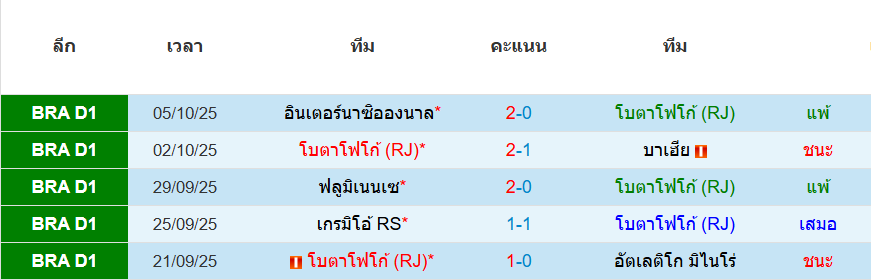สถิติ 5 นัดหลังสุดของ : โบตาโฟโก้ อาร์เจ