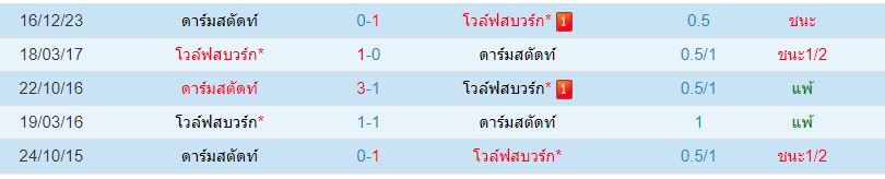 สถิติพบกัน 5 นัดหลังสุดของ : โวล์ฟสบวร์ก -vs- ดาร์มสตัดท์