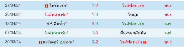 สถิติ 5 นัดหลังสุดของ : โวล์ฟสบวร์ก