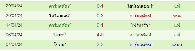 สถิติ 5 นัดหลังสุดของ : ดาร์มสตัดท์