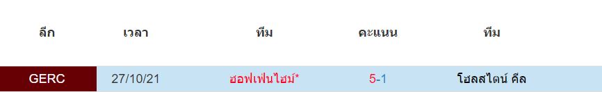 สถิติ 1 นัดหลังสุดของ : ฮอฟเฟ่นไฮม์ -vs- โฮลสไตน์ คีล
