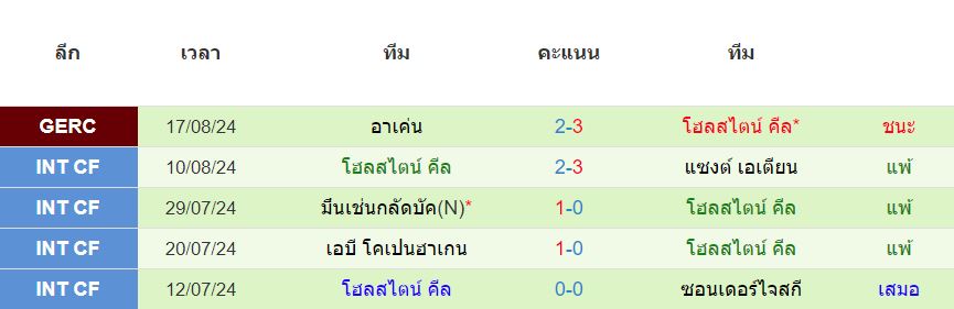 สถิติ 5 นัดหลังสุดของ : โฮลสไตน์ คีล