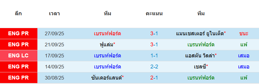 สถิติ 5 นัดหลังสุดของ : เบรนท์ฟอร์ด